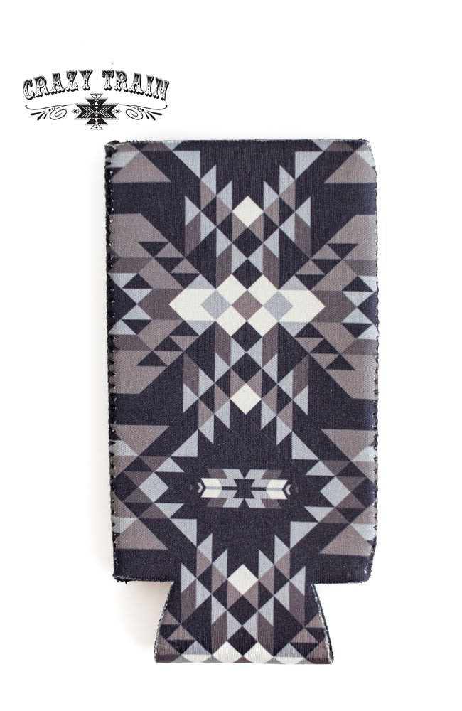Aztec Tall Slim Coozie is black and gray with neoprene inside.