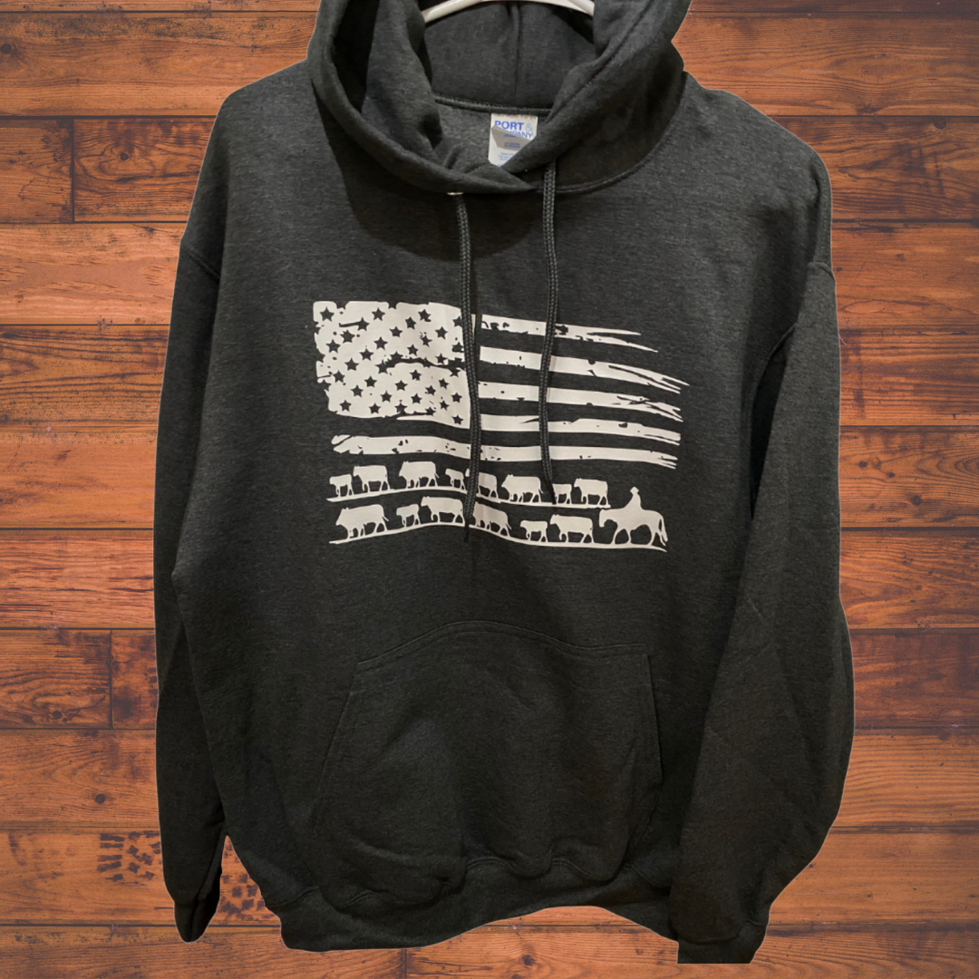 Get your exclusive Cattle/Flag sweatshirt here! Designed by Buckin D!
