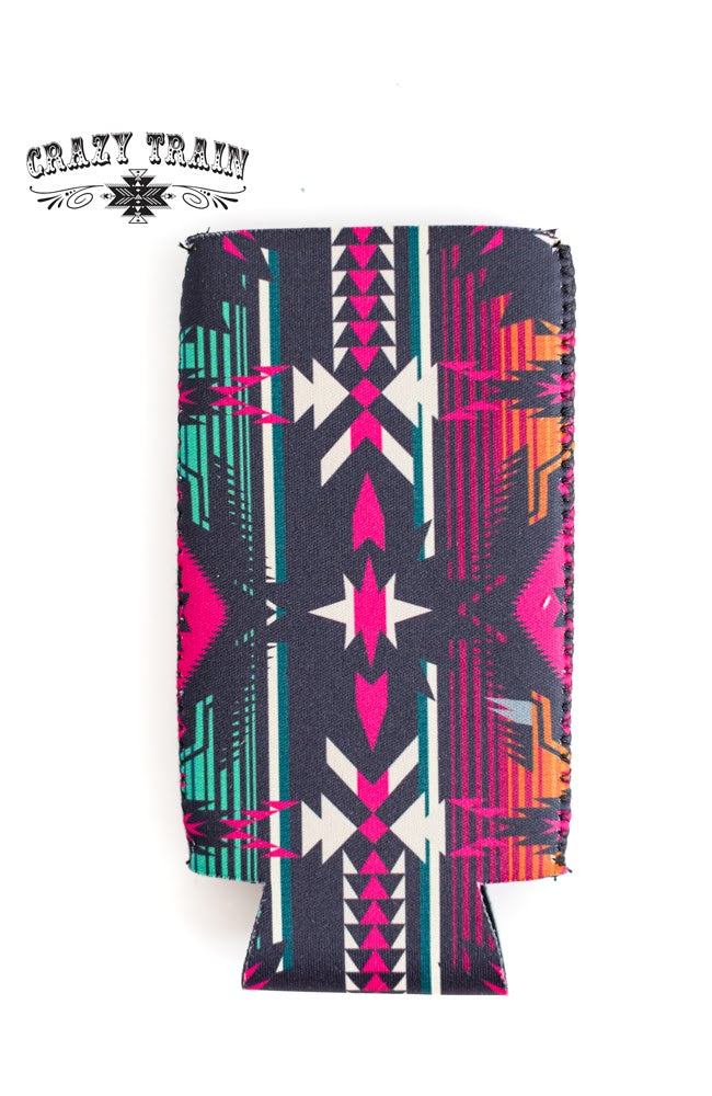Crazy Aztec Tall Slim Coozie is bright and fun! Neoprene inside.
