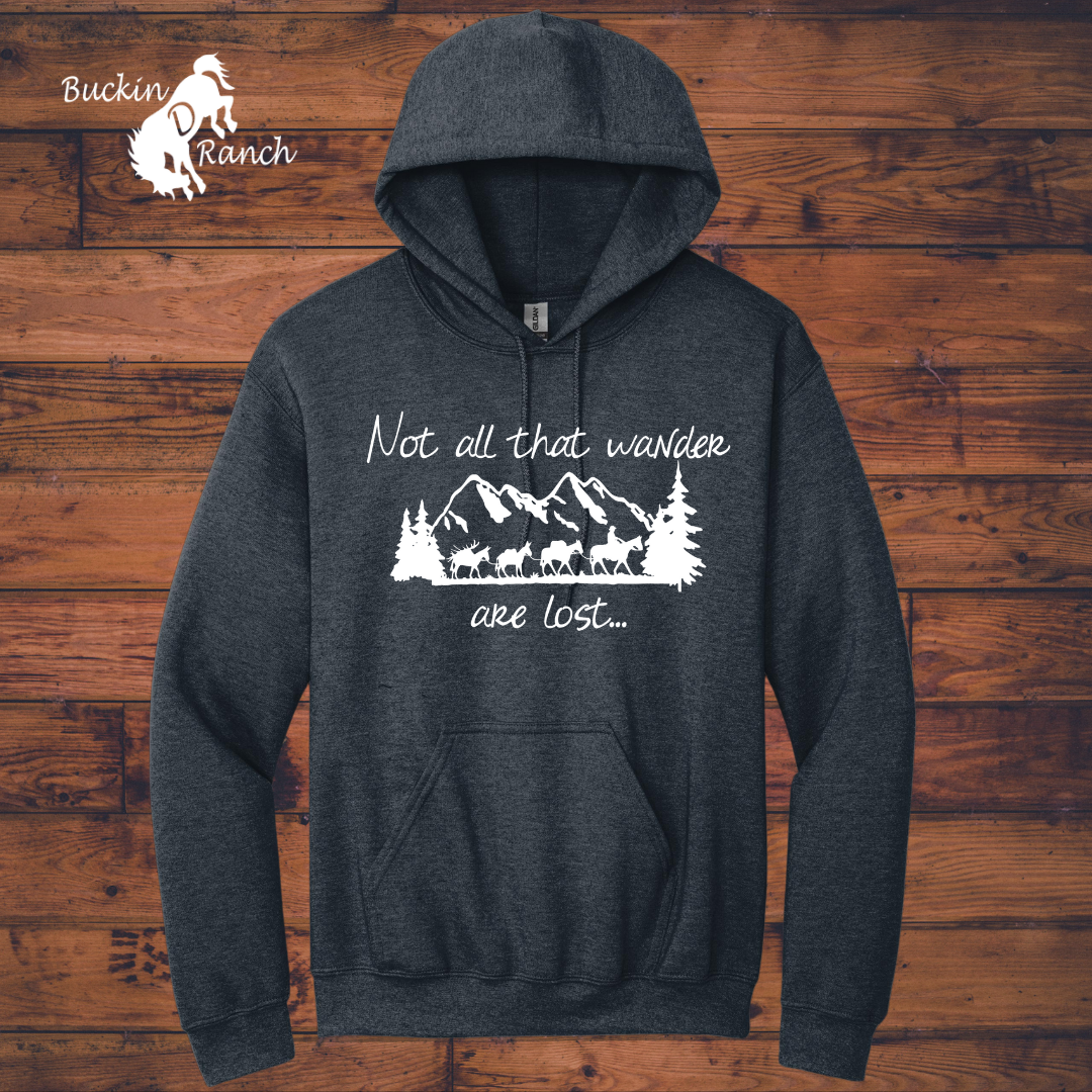 Dark Heather Gildan 50/50 blend Hoodie with the exclusive “Not All that Wander are Lost” graphic made by Buckin D. This hoodie is men’s sizing. Please allow at least 2 weeks to process and ship. Some orders may be faster when all sizes are on hand. Message me if you would like a different color of sweatshirt or graphic or size not listed.